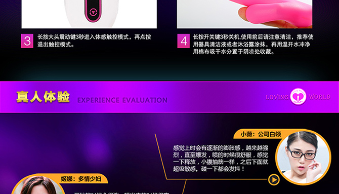 | 产品名称: CT14005*龙之舌3代* 该系列是一系列一款精美绝伦的双头震动按摩器,她具有一见倾心的魅力,也具有撩人心弦的触感,可谓是名副其实。她流畅的线条贴合女性轮廓,能更有针对性的刺激阴蒂,两个灵活独立的马达,唤醒身体的每个激情点 |